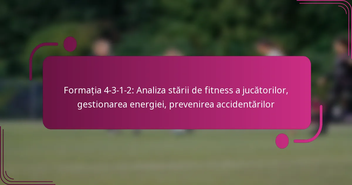 Prevenirea accidentărilor în formația 4-3-1-2 se concentrează pe antrenamente personalizate, condiționare eficientă și tehnici de recuperare. Prin implementarea unor practici strategice, antrenorii pot îmbunătăți fitnessul jucătorilor și pot reduce probabilitatea accidentărilor în timpul meciurilor.