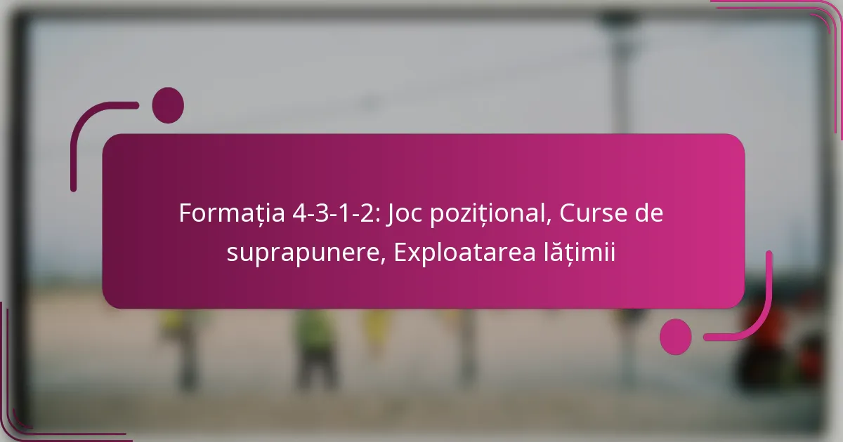 Jocul pozițional în formația 4-3-1-2 pune accent pe menținerea structurii în timp ce se creează spațiu și opțiuni pentru jucători. Această abordare facilitează mișcarea eficientă a mingii și îmbunătățește atât capabilitățile ofensive, cât și pe cele defensive.