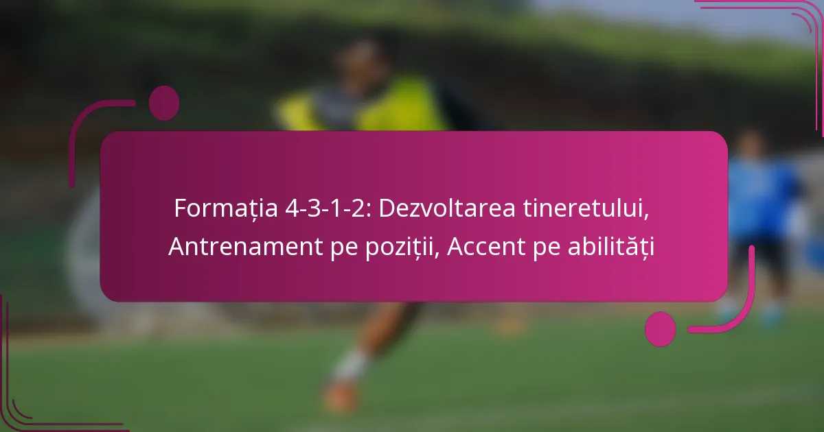 Formația 4-3-1-2 este o configurație tactică în fotbal care pune accent pe o prezență puternică în mijlocul terenului și pe doi atacanți. Această formație este deosebit de benefică pentru dezvoltarea tinerilor, deoarece încurajează jucătorii să înțeleagă rolurile și responsabilitățile lor, îmbunătățindu-și abilitățile pe teren.