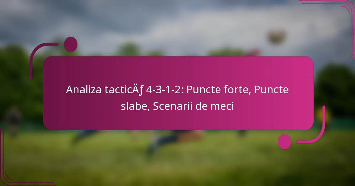 Formația 4-3-1-2 este o configurație tactică în fotbal care include patru fundași, trei mijlocași, un mijlocaș ofensiv și doi atacanți. Această formație este concepută pentru a îmbunătăți controlul mijlocului terenului și a facilita tranziții rapide, făcând-o eficientă pentru echipele care doresc să domine posesia, menținând în același timp o structură defensivă solidă. Cu toate acestea, prezintă și anumite slăbiciuni, în special împotriva jocului pe flancuri și în situațiile de contraatac, ceea ce poate afecta eficiența sa generală în diverse situații de meci.