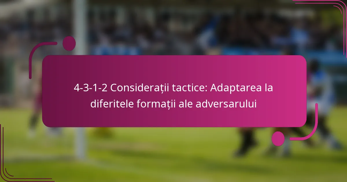 Formația 4-3-1-2 este o configurație tactică versatilă în fotbal, caracterizată printr-un mijloc solid și o linie de atac duală. Prin adaptarea la diverse formații ale adversarilor, echipele pot îmbunătăți strategiile lor defensive și ofensive, exploatând slăbiciunile în timp ce își întăresc propriile puncte forte. Această adaptabilitate este crucială pentru menținerea controlului și crearea oportunităților de a marca împotriva diferitelor stiluri de joc.