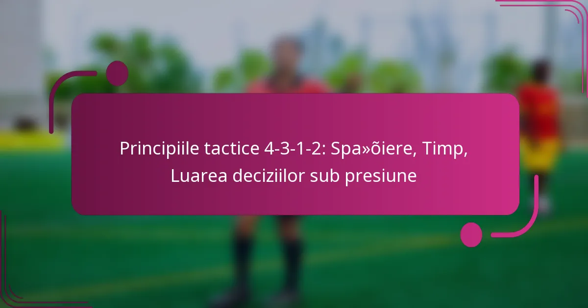 Formația 4-3-1-2 se bazează pe trei principii tactice esențiale: distanțarea, sincronizarea și luarea deciziilor sub presiune. Stăpânirea acestor principii este vitală pentru echipe pentru a-și menține structura în timp ce răspund eficient la natura rapidă a jocului. O distanțare corectă îmbunătățește mișcarea mingii și creează oportunități, în timp ce sincronizarea asigură tranziții fără probleme și dinamica coordonată a echipei.