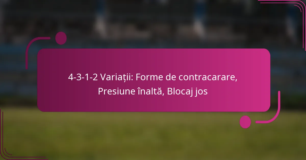 Cum poate fi adaptată formația 4-3-1-2 pentru forme de contraatac?